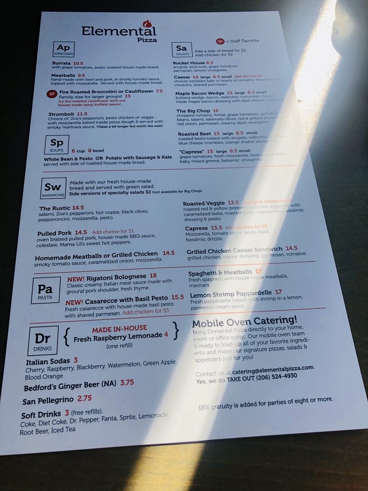 Welcome to Elemental Pizza, a delectable slice of Italy nestled in the vibrant heart of Seattle at 2634 NE University Village St. This establishment stands out not only for its stellar pizzas but also for its inviting atmosphere that is perfect for families, casual diners, and groups alike. With a range of utilities that include reservations, delivery, takeout, and delightful vegan options, Elemental Pizza is committed to serving up both convenience and quality.